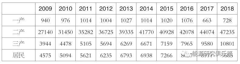 表1 2009~2018年分產(chǎn)業(yè)用電量(單位:億千瓦時)