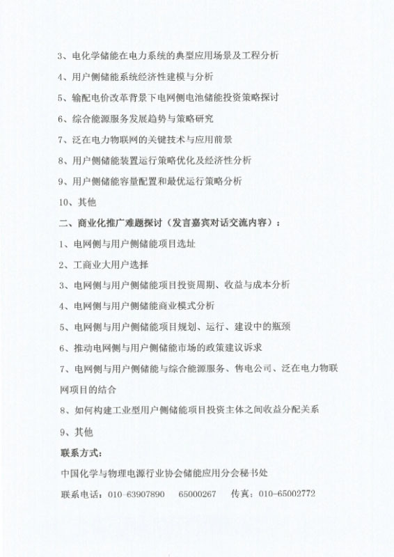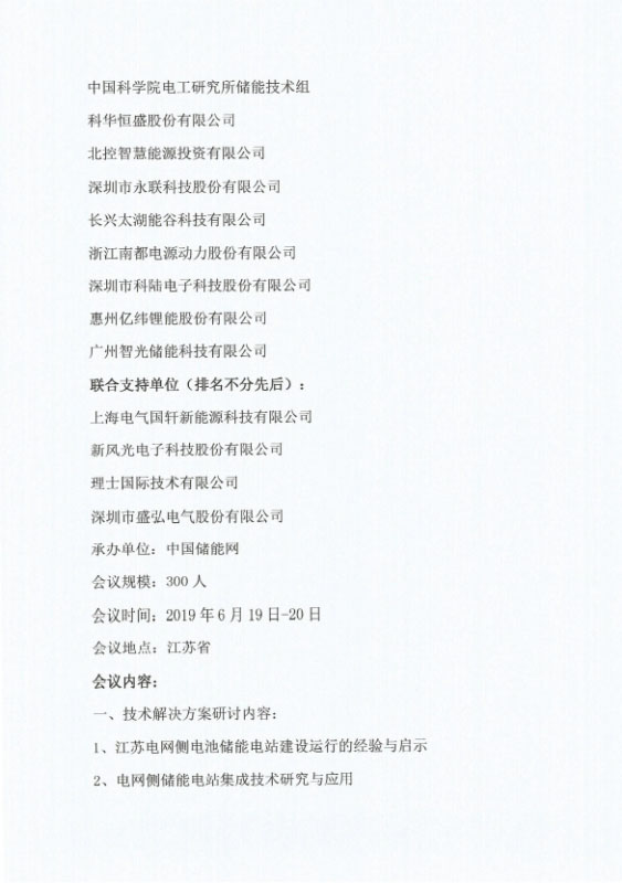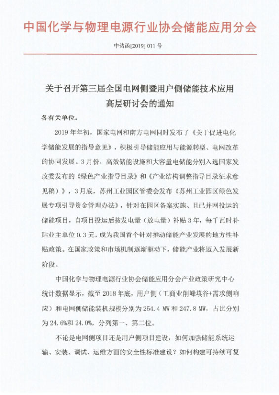關(guān)于召開第三屆全國電網(wǎng)側(cè)暨用戶側(cè)儲能技術(shù)應(yīng)用高層研討會的通知