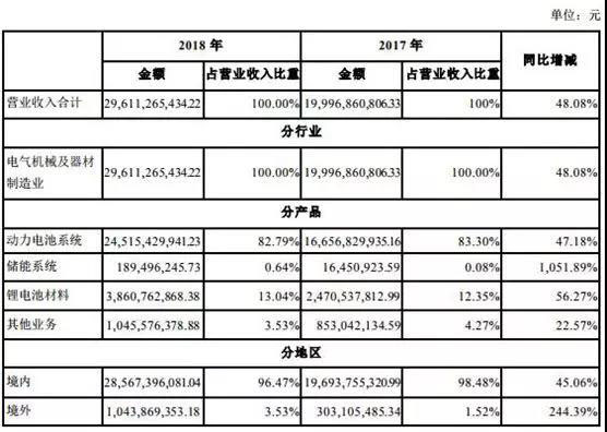 根據(jù)公告,2018年寧德時(shí)代實(shí)現(xiàn)營收296.11億元,同比增長48.08%;實(shí)現(xiàn)扣非凈利潤31.28億元,同比增長31.68%。