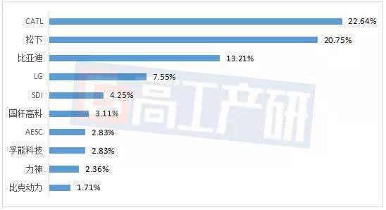 根據(jù)高工產(chǎn)研鋰電研究所(GGII)數(shù)據(jù)顯示,在2018年全球汽車動(dòng)力鋰電池企業(yè)出貨量排名中,寧德時(shí)代以22.64%市場(chǎng)占比,出貨總量冠絕全球。