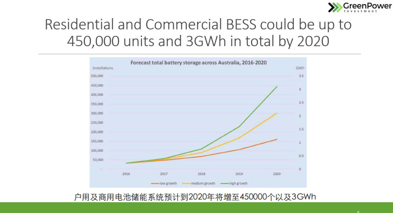 澳大利亞是全球儲(chǔ)能市場增長最快的國家之一,前幾名是美國、澳大利亞、德國、中國、日本,可是你要想澳大利亞人口有多少呢?2400萬,它的增長速度在2017年比美國差不了多少,或者相同。這意味著什么呢?澳大利亞在增長速度上面最快的,至少在2017年這樣,美國有3個(gè)多億的人口,據(jù)統(tǒng)計(jì),現(xiàn)在大約在澳洲有55個(gè)Agoing(音)的下面加在一起是4個(gè),據(jù)統(tǒng)計(jì)也就是2年,它的這個(gè)總數(shù)會(huì),綠色的就是最好,橘色的就是最低,如果是中國2020年增加到45萬個(gè)。澳大利亞自從《巴黎氣候協(xié)議》在2015年簽署以后,澳洲政府堅(jiān)定不移的承諾和執(zhí)行氣候變化的這個(gè)協(xié)議,政府瞄準(zhǔn)到2030年要實(shí)現(xiàn)50%的可再生能源,這是澳大利亞的各省的主要政策,各省跟聯(lián)邦政府也可能不是一個(gè)黨,聯(lián)邦政府是一個(gè)黨,每個(gè)省還有每個(gè)黨,有兩大黨,也不知道哪個(gè)省是哪個(gè)黨領(lǐng)導(dǎo)的,每個(gè)黨有不同的政策,所以我們這個(gè)橘黃色的是比較獨(dú)特的一個(gè)洲,他現(xiàn)在已經(jīng)沒有了,現(xiàn)在已經(jīng)實(shí)現(xiàn)了50%可再生能源的應(yīng)用,瞄準(zhǔn)在2050年實(shí)現(xiàn)全部的零排放。澳洲政府對(duì)這個(gè)綠色能源的支持是非常有效的,也是實(shí)質(zhì)性的,在光伏方面把這個(gè)不同的項(xiàng)目分成兩大檔次,100千瓦為界限,大于100千瓦是大項(xiàng)目,小于100千瓦是小項(xiàng)目。補(bǔ)貼方式也不一樣,具體數(shù)字不一一說了,時(shí)間關(guān)系。