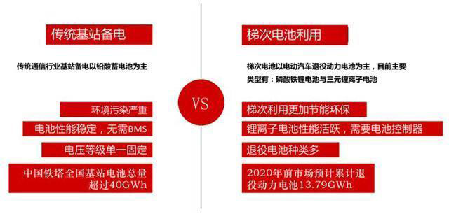 通常情況下,動力電池容量衰減至 80%以下時,將不能完全滿足汽車動力需求,但可梯次利用于其他領(lǐng)域。這一方式最典型的例子便是中國鐵塔公司,其龐大的基站、儲能布局,足夠承接退役動力電池規(guī)模。2018年,中國鐵塔公司宣布停止采購鉛酸電池,轉(zhuǎn)而將新能源汽車淘汰下來的電池用作其通信基站的備用電源,并在儲能、對外發(fā)電應(yīng)用場景加強(qiáng)業(yè)務(wù)拓展。