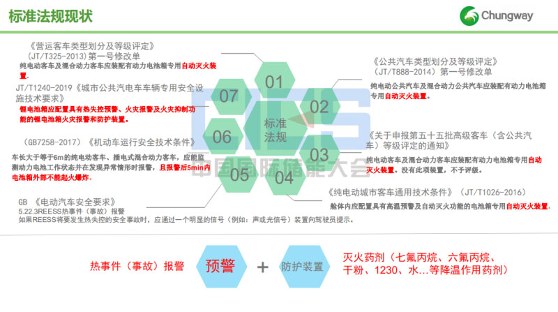 目前隨著電動(dòng)汽車火災(zāi)事故事件和社會(huì)影響力的不斷發(fā)酵,今天下午一位專家報(bào)告中也統(tǒng)計(jì)報(bào)告了多起的火災(zāi)事故。我們看一下,韓國(guó)的儲(chǔ)能電站事故目前影響也比較大,國(guó)內(nèi)也有幾起儲(chǔ)能項(xiàng)目事故??梢?jiàn)大規(guī)模的儲(chǔ)能電池堆火災(zāi)事故一旦發(fā)生就會(huì)造成嚴(yán)重后果,只有通過(guò)數(shù)據(jù)在線檢測(cè),實(shí)現(xiàn)早期熱事故預(yù)警,才能有效防止安全事故發(fā)生,做到防患于未燃,同時(shí)與電池管理系統(tǒng)、電氣系統(tǒng)和消防系統(tǒng)進(jìn)行融合聯(lián)動(dòng)控制,才能有效保護(hù)儲(chǔ)能電站的安全。從法規(guī)方面看,汽車標(biāo)準(zhǔn)比較活躍,從2014年發(fā)展新能源汽車一直到現(xiàn)在出臺(tái)了不少關(guān)于電動(dòng)汽車安全方面的交通行業(yè)標(biāo)準(zhǔn)??梢钥吹絁T/T1240標(biāo)準(zhǔn)3月1日開始實(shí)施,標(biāo)準(zhǔn)中提出了預(yù)警和防護(hù)。針對(duì)電化學(xué)儲(chǔ)能電站消防方面標(biāo)準(zhǔn)缺失,目前關(guān)于滅火劑和滅火措施的有效性均未得到有效性驗(yàn)證,需要針對(duì)儲(chǔ)能電站的消防安全進(jìn)行系統(tǒng)性深入性的研究?,F(xiàn)在是各個(gè)地區(qū),北京、山西、江蘇省出臺(tái)了相應(yīng)的地標(biāo),已經(jīng)提供了一個(gè)的安全防護(hù)思路。大家可以在會(huì)后找一下相應(yīng)的文件。對(duì)于研究團(tuán)隊(duì)來(lái)說(shuō),團(tuán)體標(biāo)準(zhǔn)有幾個(gè)聯(lián)盟在做一些相關(guān)的標(biāo)準(zhǔn)。在基礎(chǔ)研究方面清華、北理工、中科大等在做相關(guān)研究,我們做了多傳感器融合預(yù)警技術(shù)和不同滅火藥劑的應(yīng)用研究。這是電動(dòng)汽車鋰離子動(dòng)力電池的安全測(cè)試要求。對(duì)于附錄C中對(duì)熱事故檢測(cè)的參考。