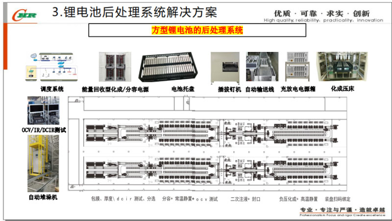 這個(gè)是目前杭可在主要幾個(gè)大類的電池產(chǎn)品當(dāng)中提供的一些整體解決方案,我們現(xiàn)在看到的就是一個(gè)圓柱的鋰電池的后處理系統(tǒng),包含了物流系統(tǒng)、充放電系統(tǒng)以及一些自動(dòng)化的設(shè)備,這個(gè)系統(tǒng)目前在國(guó)內(nèi)的很多電池公司已經(jīng)得到了應(yīng)用。這是我們給客戶提供的一個(gè)系統(tǒng)解決方案,從這個(gè)上面我們可以看出,杭可是有實(shí)施經(jīng)驗(yàn)的一個(gè)項(xiàng)目。