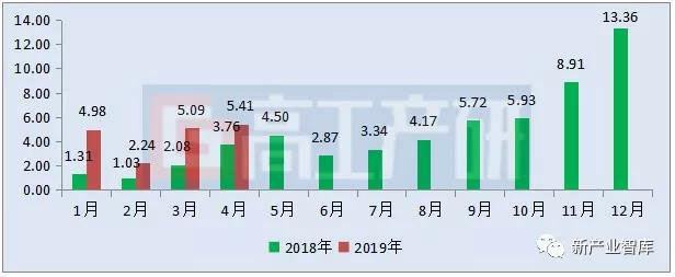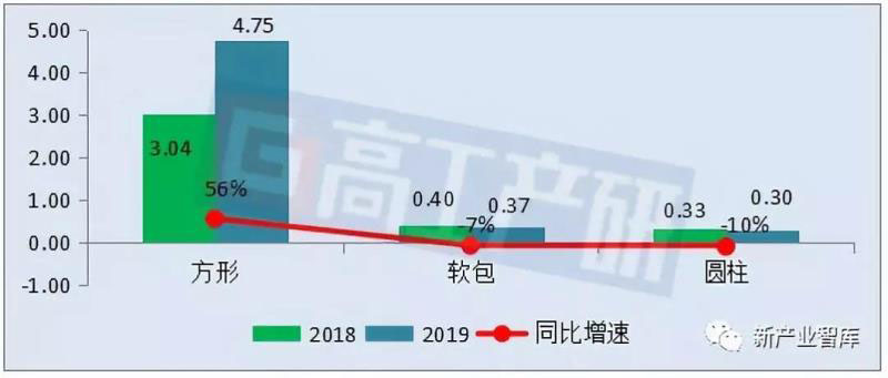 從不同電池形狀來看,2019年4月方形電池裝機(jī)電量約4.75GWh,同比增長(zhǎng)56%;軟包電池裝機(jī)電量約0.37GWh,同比下降7%;圓柱電池裝機(jī)電量約0.30GWh,同比下降10%。