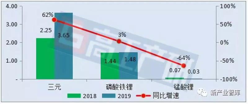 從不同電池類型來看,2019年4月三元電池裝機(jī)電量約3.65GWh,同比增長(zhǎng)62%;磷酸鐵鋰電池裝機(jī)電量約1.48GWh,同比增長(zhǎng)3%;錳酸鋰電池裝機(jī)電量約0.03GWh,同比下降64%;鈦酸鋰電池裝機(jī)數(shù)量102臺(tái),裝機(jī)總電量5,189KWh,相較于前三月出現(xiàn)大幅度減少。
