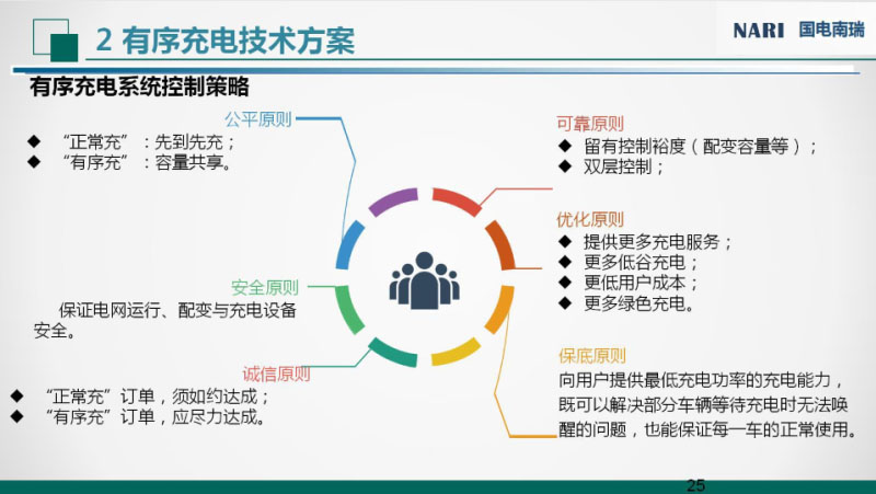 有序充電是在一定的控制策略下進(jìn)行的充電,下面講一下控制策略。控制策略主要按照幾個(gè)原則來(lái)進(jìn)行設(shè)計(jì)的,這上邊都列出來(lái)了。比如公平原則,正常充是先到先充,有序充是對(duì)臺(tái)區(qū)容量的一個(gè)共享。再如優(yōu)化原則,是把車(chē)輛的充電挪到低谷時(shí)段進(jìn)行充電,這樣用戶(hù)可以充到低成本的電,還可以充到綠色的電。為什么列出保底原則?電動(dòng)車(chē)輛在充電過(guò)程中停止充電,如果想再次啟動(dòng)充電,需要人到現(xiàn)場(chǎng)拔掉充電槍?zhuān)缓笤俅芜B接充電槍?zhuān)瑔?dòng)充電,才可以再次充電。通過(guò)復(fù)電續(xù)充功能,可以實(shí)現(xiàn)大部分車(chē)輛的斷電再次充電。但是部分車(chē)輛在斷電后會(huì)進(jìn)入休眠,無(wú)法再次啟動(dòng),所以不能采用復(fù)電續(xù)充進(jìn)行充電調(diào)節(jié),智能通過(guò)PWM調(diào)節(jié),將充電功率降到最低進(jìn)行保底充電。