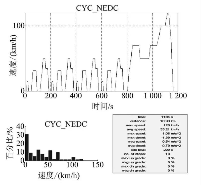 綜上,經(jīng)濟性是通過車輛的百公里油(能)耗來衡量的。本文中燃料電池轎車的經(jīng)濟性是指 NEDC 工況下百公里的氫耗量,NEDC 工況如圖 2 所示。