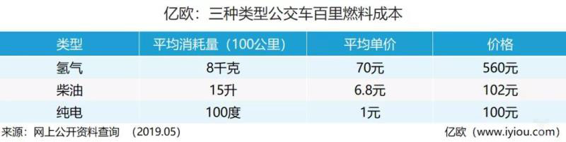 不過,工作人員告訴億歐汽車,安亭加氫站目前氫氣出售價格是70元/kg,一輛公交車跑100公里,耗氫量約8kg,價格在560元左右。億歐汽車對比了氫氣、柴油和純電動的消耗量及價格發(fā)現(xiàn),使用氫燃料電池汽車的成本遠(yuǎn)高于其他兩種燃料,目前看來,氫燃料的優(yōu)勢并不明顯。