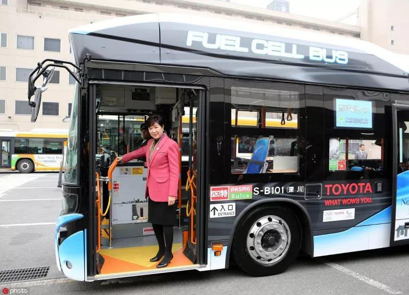 ▲東京都知事小池百合子推廣氫燃料電池公交車