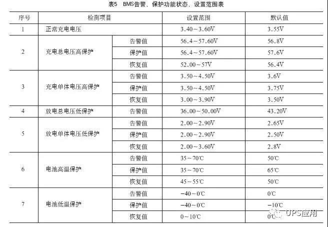 梯級電池的BMS各種檢測項目的功能狀態(tài)及參數(shù)設(shè)置范圍應(yīng)包括表5所示的內(nèi)容。