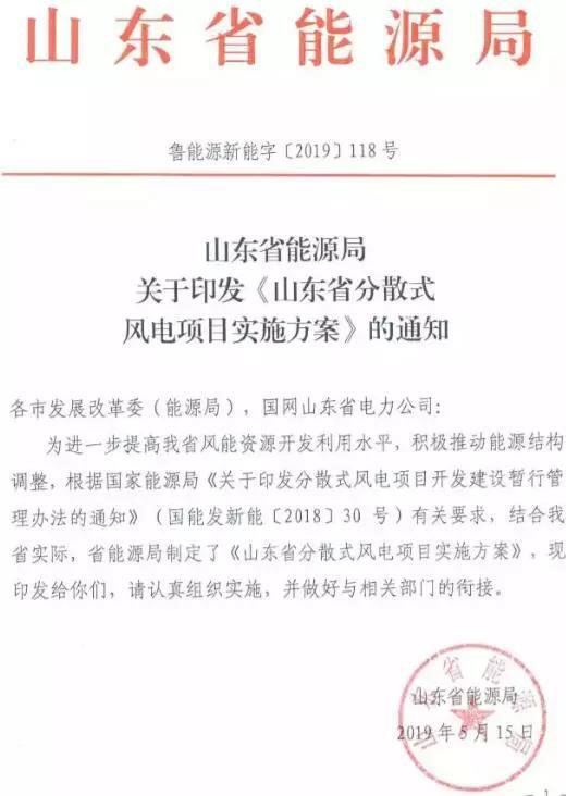 5月16日,山東省能源局發(fā)布《山東省分散式風(fēng)電項目實施方案》的通知。