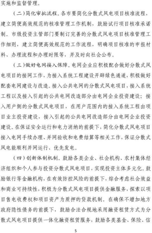 3、創(chuàng)新分散式風(fēng)電政策環(huán)境和機(jī)制,支持分散式風(fēng)電技術(shù)研發(fā)、設(shè)備生產(chǎn)、工程建設(shè)及運營,鼓勵與太陽能、生物質(zhì)能、地?zé)崮艿绕渌植际侥茉慈诤习l(fā)展,建立促進(jìn)分布式能源健康發(fā)展的長效機(jī)制。