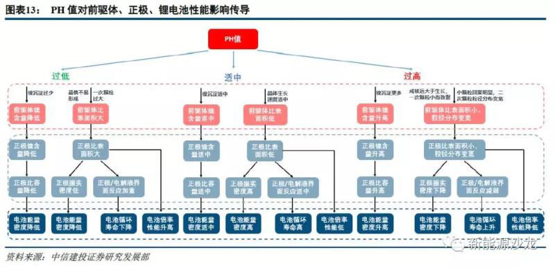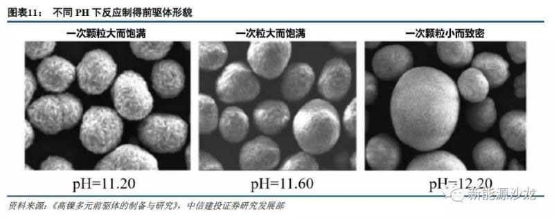 PH值對前驅體、正極、鋰電池性能影響傳導主要通過影響元素配比、顆粒形貌: