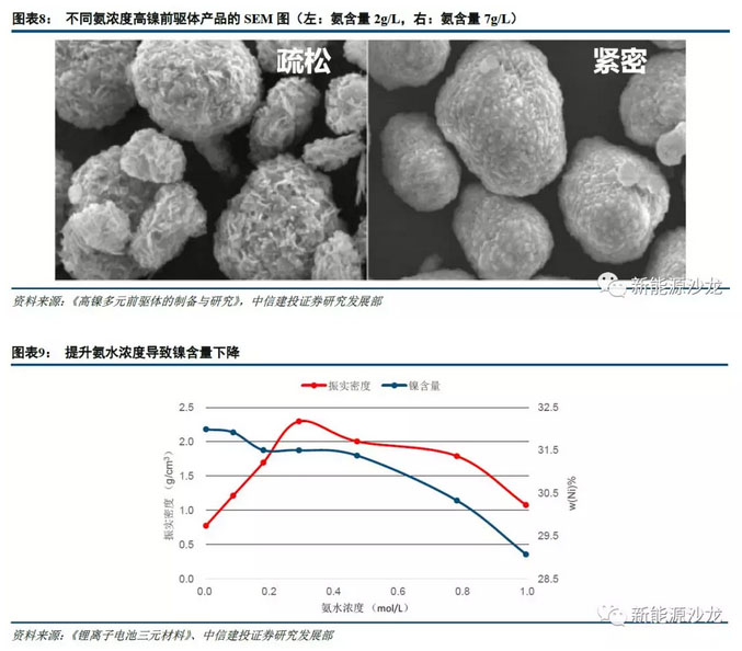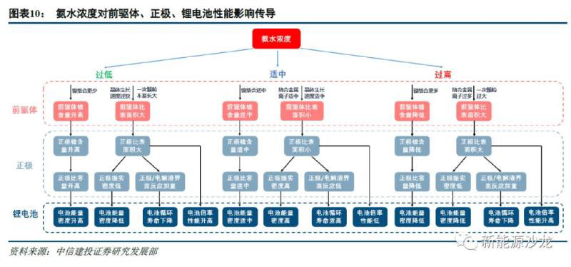 氨水對前驅體、正極、鋰電池性能影響傳導主要通過影響元素配比、顆粒形貌: