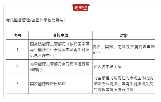 十三、加強(qiáng)消納責(zé)任權(quán)重實(shí)施監(jiān)管。國(guó)務(wù)院能源主管部門(mén)派出監(jiān)管機(jī)構(gòu)負(fù)責(zé)對(duì)各承擔(dān)消納責(zé)任的市場(chǎng)主體的消納量完成情況、可再生能源相關(guān)交易過(guò)程等情況進(jìn)行監(jiān)管,并向國(guó)務(wù)院能源主管部門(mén)報(bào)送各省級(jí)行政區(qū)域以及各電網(wǎng)企業(yè)經(jīng)營(yíng)區(qū)的消納責(zé)任權(quán)重總體完成情況專項(xiàng)監(jiān)管報(bào)告。
