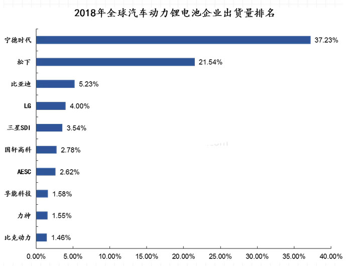 根據(jù)精選君了解的最新數(shù)據(jù),2018年,寧德時代與松下獨占全球汽車動力鋰電池出貨量前二。