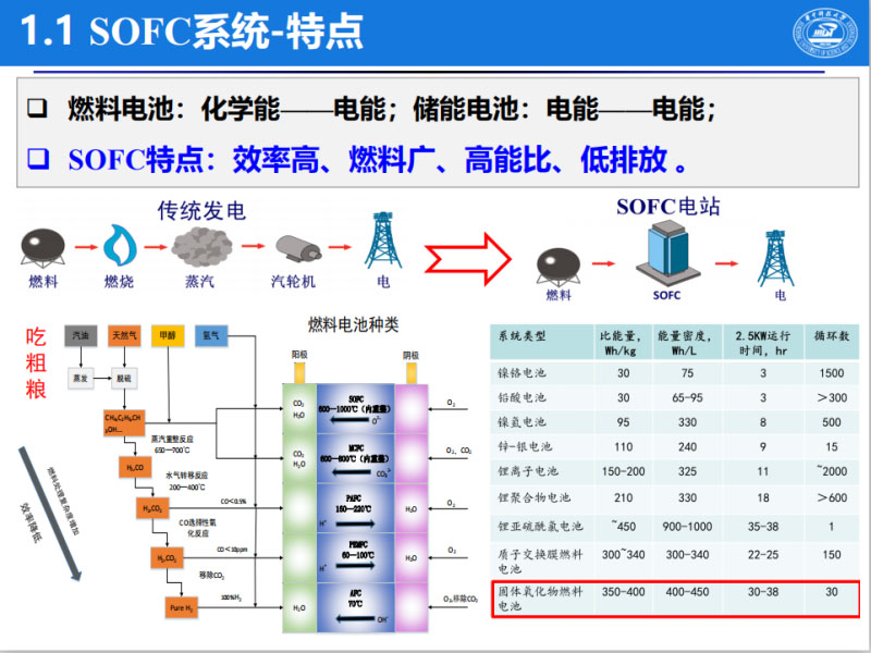 李曦:各位來賓,大家上午好!下面將我們團(tuán)隊(duì)在固體氧化物燃料電池系統(tǒng)性能評(píng)估與健康管控領(lǐng)域所做工作給大家做一個(gè)介紹。主要圍繞以下四個(gè)方面。首先是SOFC系統(tǒng)的背景、原理、特點(diǎn)。剛才前面幾位老師都已經(jīng)詳細(xì)地介紹了SOFC系統(tǒng)的發(fā)展歷史和產(chǎn)品特點(diǎn)。這是美國的海軍水下作戰(zhàn)中心選擇UUV動(dòng)力電源的時(shí)候所做的能量密度比的數(shù)據(jù)論證,充分說明了固體氧化物燃料電池優(yōu)勢(shì)。固體氧化物燃料電池的核心反應(yīng)載體,在高溫600℃以上發(fā)生電化學(xué)反應(yīng),為保障穩(wěn)定高品質(zhì)系統(tǒng)輸出,還需要配備一系列高低溫區(qū)BOP器件等形成一個(gè)獨(dú)立發(fā)電系統(tǒng),才能符合一個(gè)具體應(yīng)用場(chǎng)景的實(shí)際需求。圖中是國際上SOFC在海陸空等領(lǐng)域呈現(xiàn)的不同具體應(yīng)用,比如美日歐等國的分布式電站、家庭熱電聯(lián)供、車用輔助動(dòng)力以及百瓦級(jí)無人機(jī)。