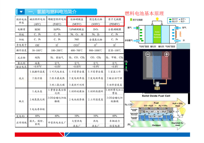 我們對SOFC最看好的一年如果有一百兆瓦、一千兆瓦的訂單希望它的含系統(tǒng)之后的成本能夠和燃氣輪機持平。這是先有雞還是先有蛋的問題。這個還需要高一級政府的支持。我們做這么多的項目是通過政府規(guī)劃能夠帶動項目運轉(zhuǎn)。另外一個是IGFC,它的核心就是SOFC。IGFC和能源安全有關(guān)。大家注意,后面的熱電聯(lián)產(chǎn)也是符合應(yīng)用追求。煤氣化需要很高濃度的氧氣。這是美國能源部做過的IGFC兩百兆瓦的概念型設(shè)計。它所體現(xiàn)出的經(jīng)濟性是非常好的。這是我們之前做的一些項目。這是另外一個項目,這是中國分南做的項目。從這個圖,強調(diào)的是SOFC與數(shù)據(jù)中心和樓宇冷熱電三連供的聯(lián)合,你有了熱,就有冷。不管是熱供方式,中國未來上了5G,市場規(guī)模是驚人的。用冷需求就需要有高溫的熱。這是剛才這個項目用到的分南項目。這個來源是污水處理廠的污泥。這是做的另外一個業(yè)主的項目?,F(xiàn)在南網(wǎng)國網(wǎng)這樣的企業(yè)都要轉(zhuǎn)型做綜合能源服務(wù)商。熱多了怎么辦,蓄熱裝置容量是非常有限的。SOEC用熱把用不掉的用它,結(jié)合借部分的電來制氫。把多余的熱不排掉,這是對分布式能源非常好促進的系統(tǒng)。另外一個是HCNG微型燃機?;鞖涞臐舛葲]有辦法保證,不能今天7%明天8%。第二個氫氣在管道內(nèi)的分布也有關(guān)系。氫氣濃度有變化,出來的火焰長度不一樣。要么純氫燃氣要么就是普通的天然氣。