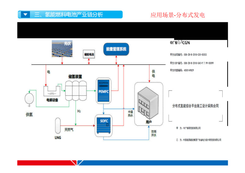 這是荷蘭,離岸制氫,就在風機上就在平臺上。還有一個就是甲醇,國家八部委在開展的產(chǎn)業(yè)推介會,它和SOFC高溫燃料電池結(jié)合也是非常好的點。這是吉利當年做的三年路試。這是美國能源部當時做的小型項目。大家看到,如果把它送回來制氫,要通過我的風機,HVAC再變成MVAC。另外一點,電解之后的氧氣可以去到電廠。第二我的煤化工還有一個就是副氧燃燒。本身氫氣和燃料電池行業(yè)不僅可以促進之前說的三氣,四氣,其實更重要的是可以促進化石能源的潔凈化利用還有提高二氧化碳的普及率。這是混氫,國家有規(guī)范。但是車載沒問題,怎么運過去,這是問題。只能在天然氣站混。氮氧化物的問題沒有解決。這是我們做的智能微網(wǎng),它可實現(xiàn)可直升飛機的聯(lián)網(wǎng)。安全就不說了。