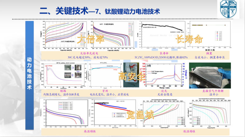 對此,我們針對軌道交通,開展燃料電池系統(tǒng),還有能量管理控制器的研制。不同于汽車,為降低成本,控制器都是基于單片機(jī),而軌道交通,更關(guān)注可靠性,因此我們基于PLC進(jìn)行開發(fā)。另外就是動力電池方面,儲能方面,因?yàn)檐壍澜煌▽τ诎踩囊笫欠浅8叩?。大家也知道?.23事故,影響非常大。安全對軌道交通來說是壓倒一切,所以我們不會考慮在軌道交通上面使用三元甚至磷酸鐵鋰。目前我們只選擇鈦酸鋰電池,主要是基于它的安全性。聯(lián)合一些電池的生產(chǎn)廠家,做一些專門針對軌道交通的儲能系統(tǒng)研發(fā)。我們主要關(guān)注大倍率,因?yàn)檐壍澜煌〝?shù)秒有上千安的電流變化,所以必須大倍率。這個火車,可能從南開到北,一年四季,氣候變化非常大,也要求具有很好的溫度適用性。電芯是跟四川國創(chuàng)成來合作,我們學(xué)校主要做四大管理,就是熱管理、均衡管理、安全管理和壽命管理。