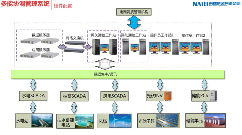 下面介紹一下幾個數(shù)據(jù)案例,第一個就是廣電柔和控制系統(tǒng),我們在這個豐寧電站有一個控制總站,可以接收一些數(shù)據(jù),也可以接受調(diào)度的發(fā)電計劃,同時根據(jù)風(fēng)光的處理預(yù)測還有實時的工況,做一些優(yōu)化計算來實時調(diào)節(jié)這個抽水性能機組的出力。保證它的對外流線的恒定,這是廣域一個多能互補的案例。