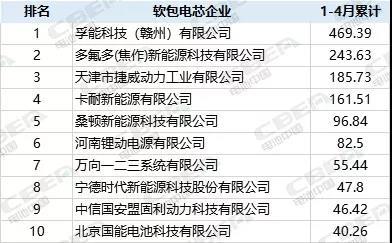 值得一提的是,自去年下半年以來,多家電池企業(yè)軟包電池產(chǎn)能釋放,也推動了今年1-4月軟包電池裝機(jī)量的增加。如捷威動力、河南鋰動、寧德時代去年1-4月軟包電池裝機(jī)量均為0,而今年都進(jìn)入軟包裝機(jī)量前10陣營。電池中國網(wǎng)認(rèn)為,隨著各家企業(yè)軟包電池產(chǎn)能陸續(xù)釋放,今年全年軟包電池裝機(jī)量翻番基本沒有懸念。