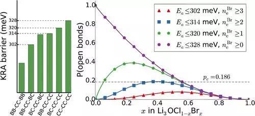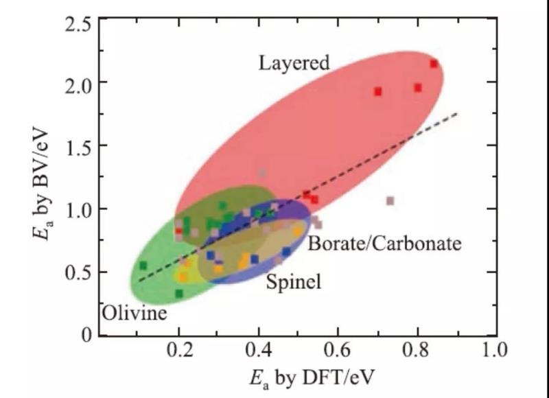 該課題組采用改進(jìn)的方法,將鍵價參數(shù)用 Morse勢與靜電庫侖勢表示,得到使離子通道連 通的活化能,與密度泛函理論(density functional theory, DFT)計算值比較(見上圖)。