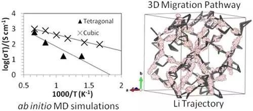 Stefan Adams和Khang Hoang分別以Li7La3Zr2O12 為例,利用鍵價方法、分子動力學(xué)和 第一性原理計算等方法,研究其鋰離子分布以及溫度相關(guān)的相變。實驗表明Li含量在6.5左右時 四方相—立方相轉(zhuǎn)變溫度較低,且室溫電導(dǎo)率可高達(dá)10-3 S/cm。
