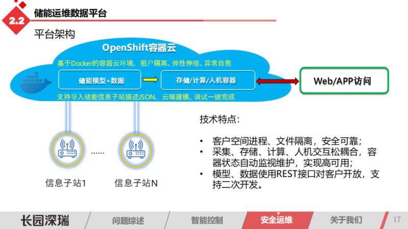 張云:各位領(lǐng)導專家,大家上午好!很榮幸能夠代表公司給大家做電化學儲能智能控制、安全運維技術(shù)應用。我今天匯報的內(nèi)容分為四個部分,分別是儲能控制運維領(lǐng)域亟待解決的問題、智能控制與安全運維方面的探索和沉淀以及對公司儲能產(chǎn)品與實踐的簡要介紹。