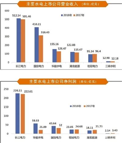 國(guó)內(nèi)主要水電上市公司近期陸續(xù)發(fā)布2018年年報(bào)。萬(wàn)德數(shù)據(jù)分析顯示,水電板塊20家上市企業(yè)2018年共實(shí)現(xiàn)營(yíng)收1126.35億元,同比增長(zhǎng)5.71%;實(shí)現(xiàn)歸母凈利潤(rùn)總計(jì)365.02億元,同比增長(zhǎng)11.96%。其中,長(zhǎng)江電力、華能水電、國(guó)投電力、三峽水利、湖北能源、桂冠電力等主要上市企業(yè)2018年均實(shí)現(xiàn)盈利,但增速不一:華能水電凈利潤(rùn)增幅居首,同比增165.1%;國(guó)投電力、長(zhǎng)江電力同比增35.02%、1.57%;三峽水利、湖北能源、桂冠電力凈利潤(rùn)增速由正轉(zhuǎn)負(fù),分別減少37.8%、16.67%、3.38%。