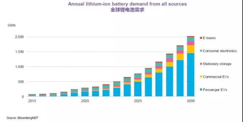 電動(dòng)汽車的累計(jì)銷量將大幅度增長(zhǎng)。BNEF預(yù)期全球電動(dòng)乘用車銷量將從2018年的200萬(wàn)輛上升至2030年的2800萬(wàn)輛,而到2040年將增長(zhǎng)至5600萬(wàn)輛。