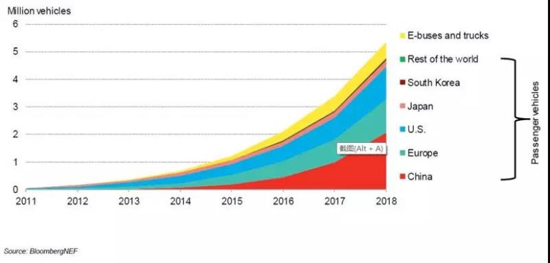 這份報(bào)告稱,全球電動(dòng)汽車保有量2018年已經(jīng)突破500萬(wàn)輛,電動(dòng)車在中國(guó)、歐洲、北美、日本等主要汽車市場(chǎng)的占比仍低于5%。