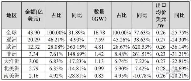 一季度組件出口數(shù)據(jù)統(tǒng)計(按地區(qū))