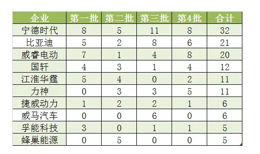 從配套數(shù)量上來(lái)看,寧德時(shí)代32款的總配套數(shù)量穩(wěn)居第一,并且每一批配套數(shù)量均為第一(其中第四批與威睿電動(dòng)并列第一) ,配套車(chē)型涉及面最廣,包括大眾、現(xiàn)代、北汽、吉利、菲亞特、奇瑞、長(zhǎng)城、廣汽、奧迪、威馬、起亞、國(guó)能等國(guó)內(nèi)主流車(chē)企,“朋友圈”涵蓋半個(gè)車(chē)企圈果然不是說(shuō)說(shuō)而已。