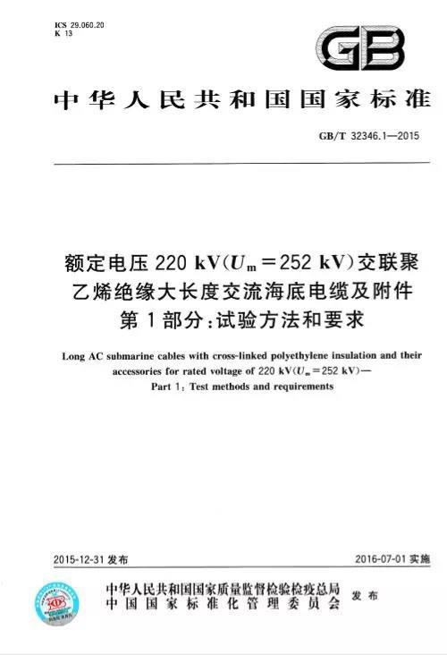 廣州嶺南電纜股份有限公司參與起草了《額定電壓220kV交聯(lián)聚乙烯絕緣大長度交流海底電纜及附件第1部分:試驗方法和要求》此項國家標(biāo)準(zhǔn)(GB/T 32346.1-2015)。該部分標(biāo)準(zhǔn)規(guī)定了額定電壓220kV交聯(lián)聚乙烯絕緣大長度交流海底電纜及其附件的試驗方法和要求。