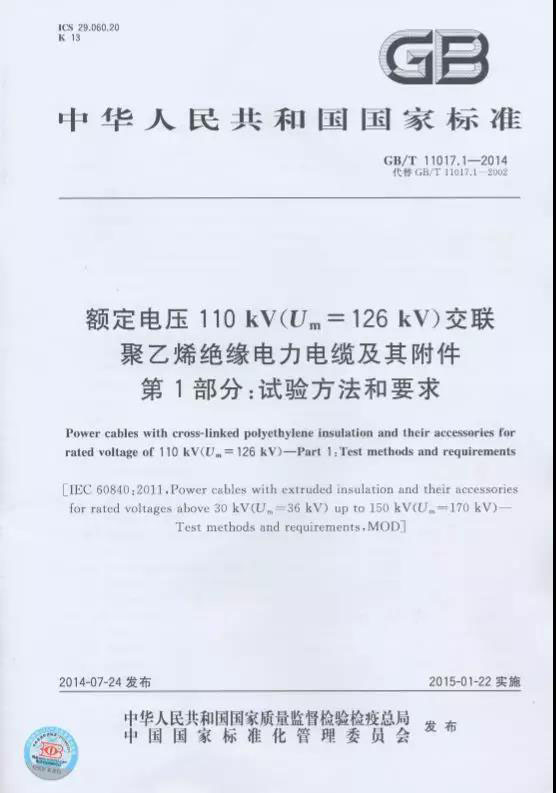 廣州嶺南電纜股份有限公司參與起草了《額定電壓110kV交聯(lián)聚乙烯絕緣電力電纜及其附件第1部分:試驗方法和要求》這項國家標(biāo)準(zhǔn)(GB/T 11017.1-2014)。該部分標(biāo)準(zhǔn)規(guī)定了額定電壓110kV固定安裝的交聯(lián)聚乙烯絕緣電力電纜系統(tǒng)、電纜本體及其附件本體的試驗方法和要求。
