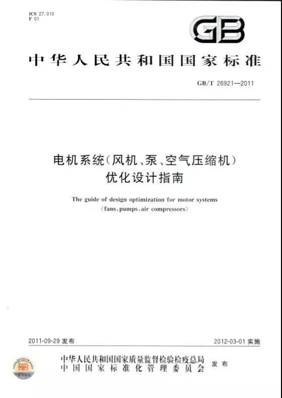 廣州智光電氣股份有限公司參與起草《電機(jī)系統(tǒng)(風(fēng)機(jī)、泵、空氣壓縮機(jī))優(yōu)化設(shè)計指南》這項國家標(biāo)準(zhǔn)(GB/T 26921-2011)。此標(biāo)準(zhǔn)涉及了電機(jī)系統(tǒng)基本要求、電動機(jī)選用、風(fēng)機(jī)系統(tǒng)優(yōu)化設(shè)計、泵系統(tǒng)優(yōu)化設(shè)計等方面,補(bǔ)足了國家標(biāo)準(zhǔn)。