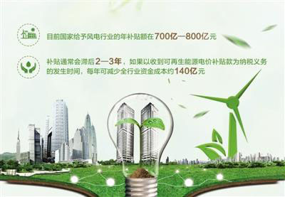 雖是稅法認(rèn)可的征收方式,但對(duì)于可再生能源發(fā)電企業(yè)而言,由此帶來的壓力也是切實(shí)可見的。新疆金風(fēng)科技股份有限公司董事長武鋼給記者算了這樣一筆賬:以風(fēng)電行業(yè)為例,目前國家給予風(fēng)電行業(yè)的年補(bǔ)貼額在700億—800億元,補(bǔ)貼通常會(huì)滯后2—3年,如果將現(xiàn)行的“權(quán)責(zé)發(fā)生制”改為“收付實(shí)現(xiàn)制”,即以收到可再生能源電價(jià)補(bǔ)貼款為納稅義務(wù)的發(fā)生時(shí)間,每年可減少全行業(yè)資金成本約140億元。
