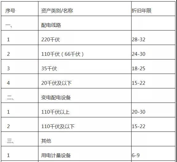 增量配電網(wǎng)企業(yè)固定資產(chǎn)分類定價(jià)折舊年限