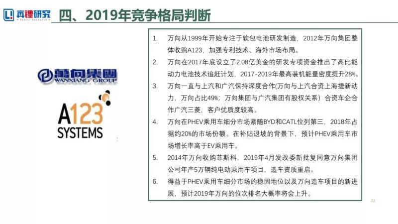 得益于PHEV乘用車細(xì)分市場的穩(wěn)固地位以及萬向造車項目的新進(jìn)展,預(yù)計2019年萬向的位次排名大概率將會上升。