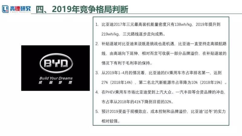 預(yù)計2019受益于規(guī)模效應(yīng)、成本控制和品牌溢價,比亞迪“過冬”的實力相對較強(qiáng)。