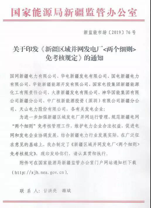 通知要求,上述兩項規(guī)定均自 2019年1月1日起執(zhí)行,原《新疆區(qū)域并網(wǎng)發(fā)電廠〈兩個細(xì)則〉免考核規(guī)定》(新監(jiān)能市場〔2018〕205 號)同時廢止。