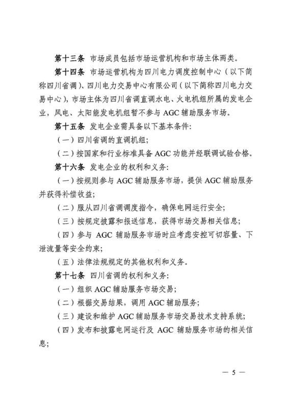 中國儲能網(wǎng)訊:5月17日,四川能監(jiān)辦、四川省工信廳聯(lián)合印發(fā)《四川自動發(fā)電控制輔助服務(wù)市場交易細(xì)則(試行)》,標(biāo)志著四川AGC輔助服務(wù)市場正式啟動。