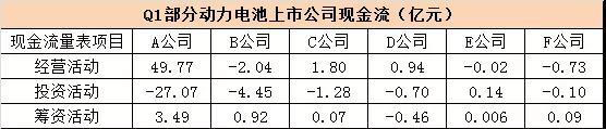 另一方面,現(xiàn)金流向的具象反映。盡管一季度報(bào)表中,不少動(dòng)力電池上市公司的營收、凈利顯得依舊光鮮,但從現(xiàn)金流量數(shù)據(jù)來看,不同的上市公司面臨著不同的壓力與風(fēng)險(xiǎn)。