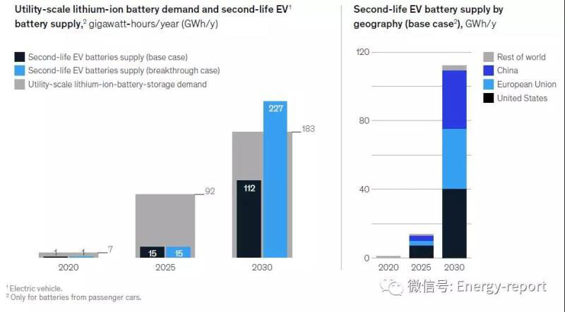 在接下來的幾十年中,電動汽車(EV)的強勁增長將導(dǎo)致電池的可用性達到太瓦時水平,電池將不只滿足電動汽車的使用要求。從這個角度來看,像美國這樣的國家在一整年中使用數(shù)太瓦時的電力,這是一個很大的儲能潛力。為這些仍然有用的電池找到應(yīng)用場景可以創(chuàng)造巨大的價值,甚至最終有助于降低儲能成本,使可再生能源進一步接入我們的電網(wǎng)中。