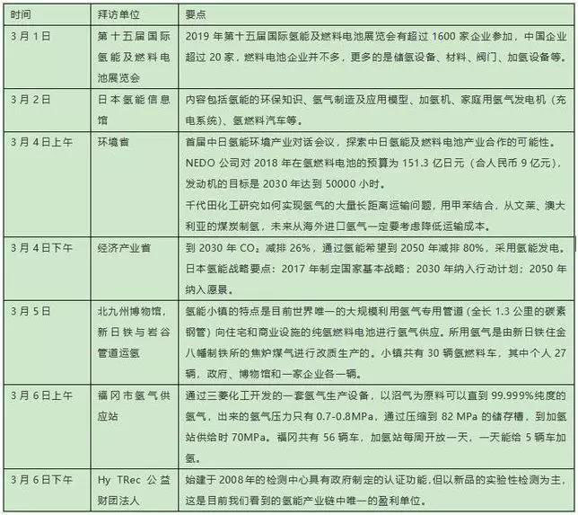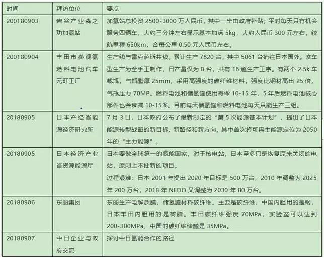 主要收獲:日本從事氫能產(chǎn)業(yè)的科研、制造企業(yè)以及項目進度