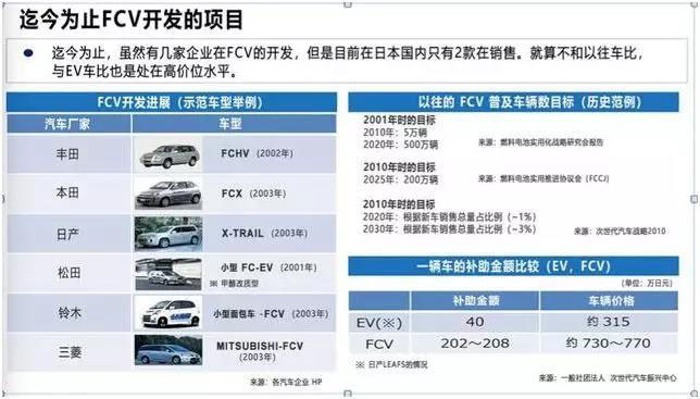 2001年日本提出的目標(biāo)是到2010年燃料電池汽車累計達到5萬輛,2020年累計達到500萬輛;2010年調(diào)整為2025年200萬輛。