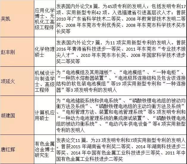 寧德時代的核心技術(shù)主要來源于以吳凱、趙豐剛、項延火、胡建國、唐紅輝等為核心的技術(shù)研發(fā)團隊以自主研發(fā)的方式進行的技術(shù)積累。這5名核心技術(shù)人員所取得的專業(yè)資質(zhì)、重要科研成果和獲獎情況如下: