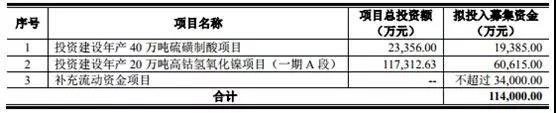 5月31日,天賜材料(002709)公告稱(chēng),公司擬公開(kāi)發(fā)行可轉(zhuǎn)換公司債券,募集資金總額不超過(guò)11.4億元,擬用于投資建設(shè)年產(chǎn)40萬(wàn)噸硫磺制酸項(xiàng)目、年產(chǎn)20萬(wàn)噸高鈷氫氧化鎳項(xiàng)目及補(bǔ)充流動(dòng)資金。